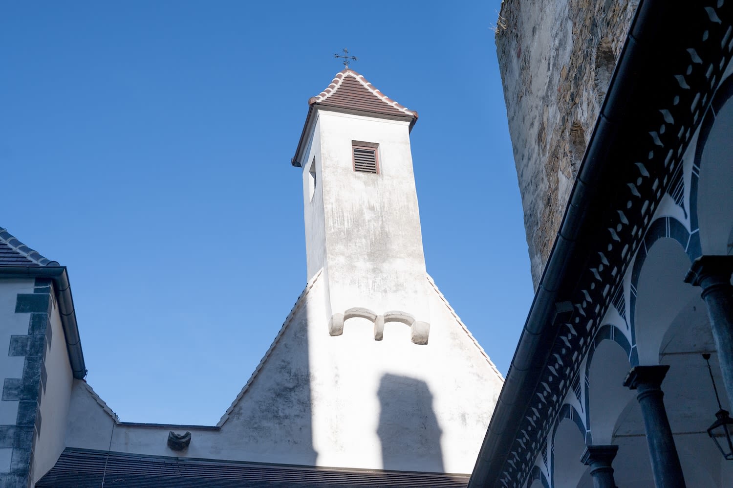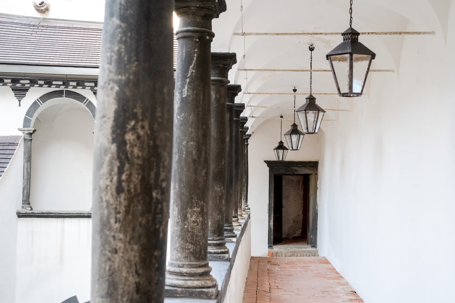Nun sind wir neugierig auf den Rest der Burg. Die Anfänge des prächtigen Renaissanceschlosses gehen bereits aufs 11. Jahrhundert zurück, das heutige Erscheinungsbild wurde stark durch den Ausbau unter Hans Wilhelm von Losenstein vor rund 500 Jahren geprägt. Was ich ursprünglich nicht wusste: Auch abseits der Ausstellungsräume lassen sich Teile dieser faszinierenden Burg auf eigene Faust erkunden; und das wollen wir natürlich nicht verpassen. Wir bewundern den schwarz-weiß verputzten Arkadengang, genießen die Aussicht vom der Ringmauer und schlendern durch die Rauchkuchl und andere Raumteile der Schallaburg.