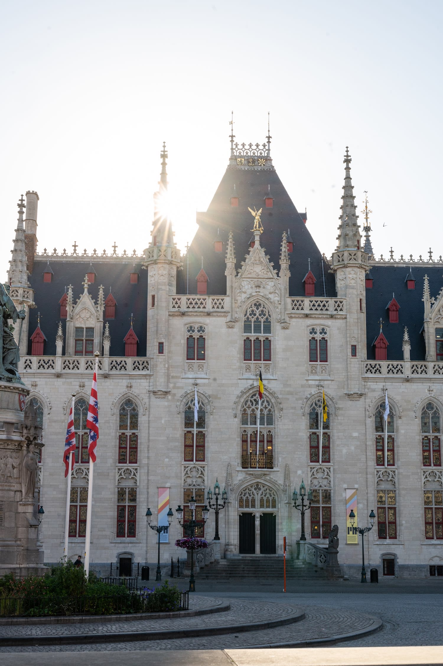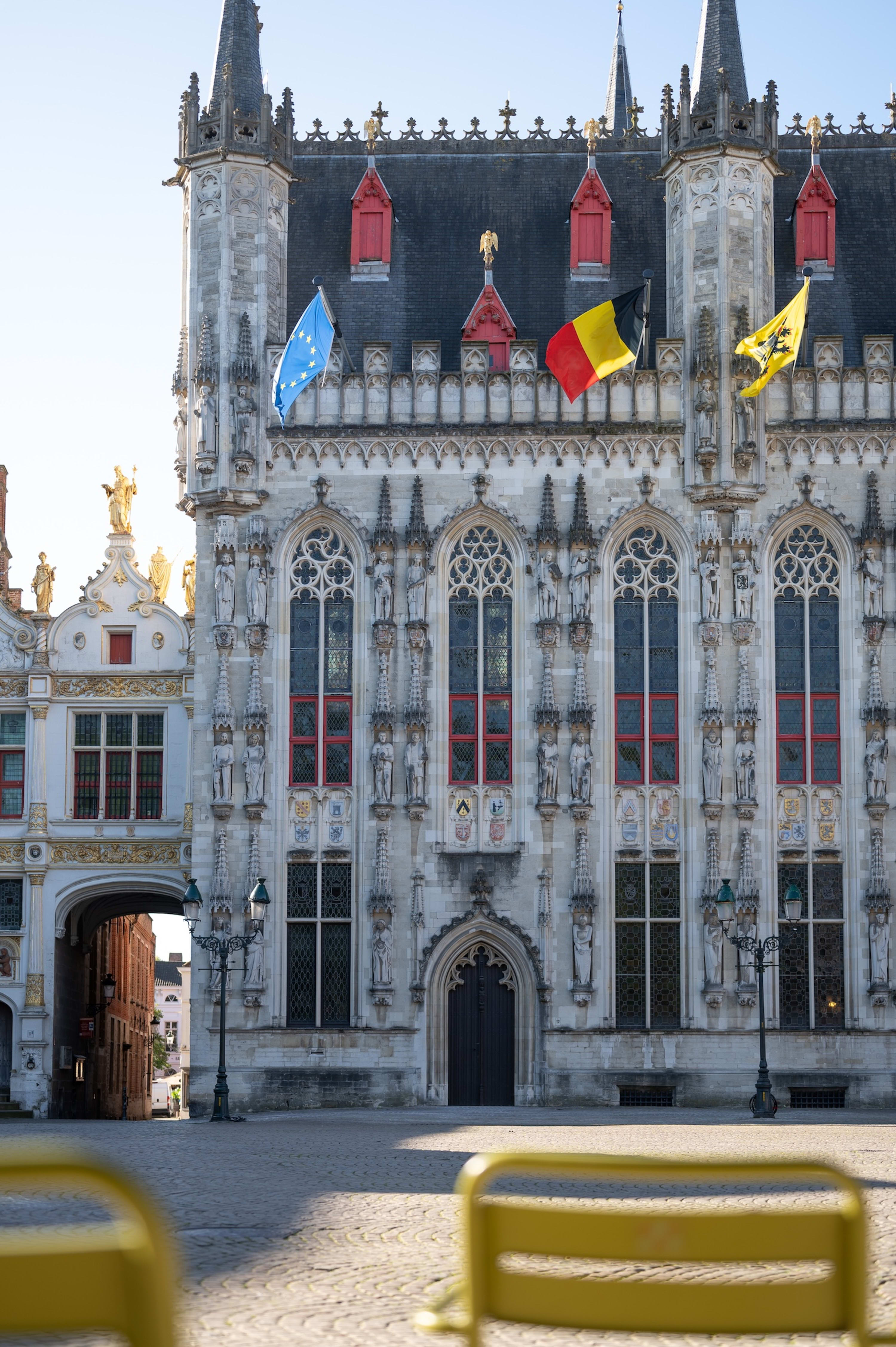 Gleich ums Eck vom großen Markt, nur eine Straße weiter, liegt mit dem Burgplatz ein weiterer atemberaubender Ort Brügges. Das gotische Rathaus aus dem 14. Jahrhundert ist dabei nur ein absolut sehenswertes Gebäude am Platz, an das sich weitere monumentale Häuser reihen. Mein Tipp: Auf einen der gelben Stühle Platz nehmen und das Bild wirken lassen.