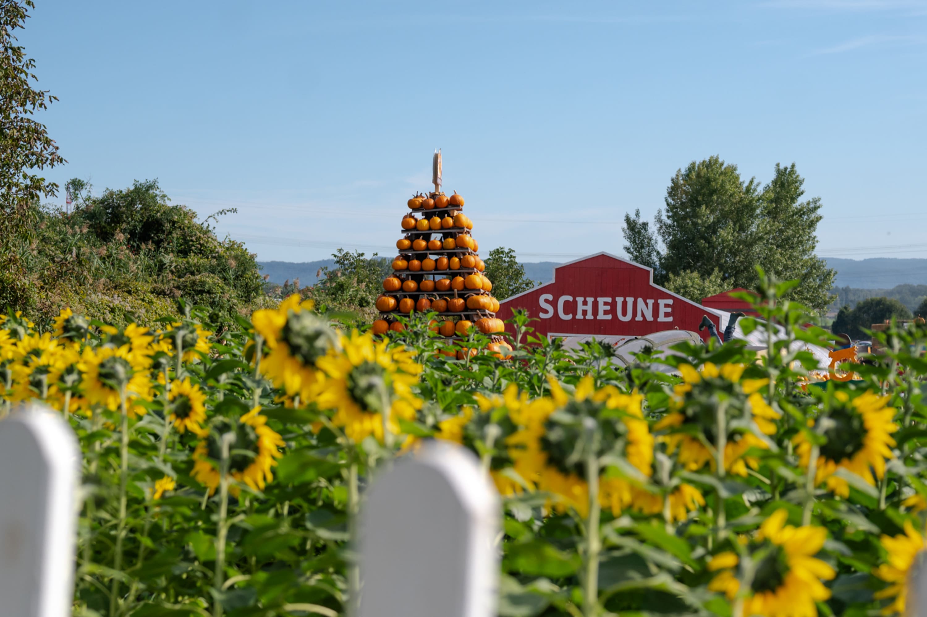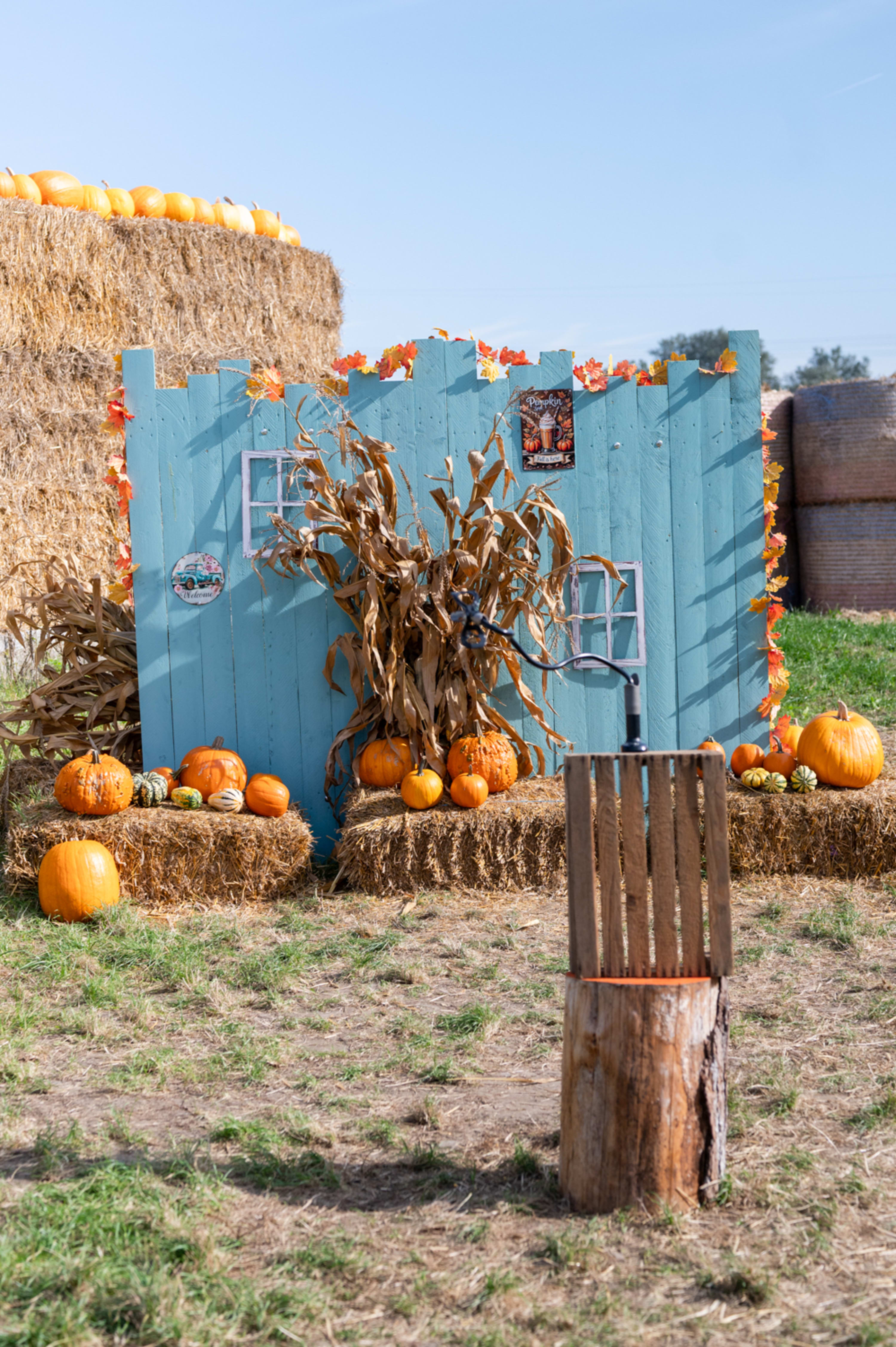 Alle, die sich hier auch ein wenig angesprochen fühlen, kann ich beruhigen. Es geht hier nicht nur darum Erinnerungsfotos zu schießen. Das kann man zwar (sehr oft) tun, muss man aber nicht. Man kann auch einfach durch die Gegend flanieren, sich über die Dekoration amüsieren, sie bewundern und sich einfach über den Herbstzauber freuen. Über die vielen knallorangen Kürbisse, die Sonnenblumen oder die rot-weiße Scheune beispielsweise. Für etwas Action bei den Kleinsten sorgen außerdem Maisbetten, Strohballen zum Hüpfen oder Dosenwerfen, die Großen freuen sich über die Food Trucks, die Besucher:innen mit herbstlichen Schmankerln verwöhnen. Tja und wer immer noch nicht genug von Kürbis hat, hat beim Ausgang noch die Chance sich für zu Hause mit ganz vielen davon beim Ab-Hof Verkauf einzudecken.
