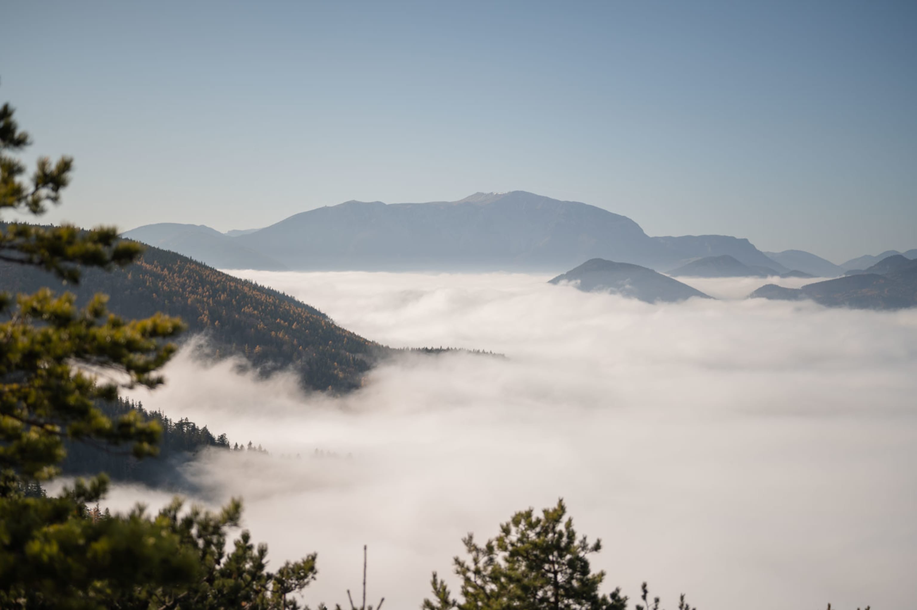 Die letzte größere Wanderung führte mich wieder durch den Nebel und an neue Orte vor der Haustür. Gemeinsam mit meinem Papa wollte ich an einem Nebelsonntag auf den Dürrnberg bei Würflach wandern (mit rund 800 Metern hatten wir durchaus Chancen, die Wolkendecke zu durchbrechen). Von der Wellness Welt Würflach wandern wir immer bergauf, lassen den Nadelwald und Nebel hinter uns und erreichen die schönste Herbstlandschaft. Schlanke hohe Buchen, raschelndes Laub, weite Blicke bis zum Sonnwendstein und die strahlende Novembersonne machen die Wanderung zu einem großartigen Erlebnis. Auch, wenn wir die Abzweigung zum Dürrnberg verpassen und so statt zum Gipfel zum Lärbaumkreuz wanderten.