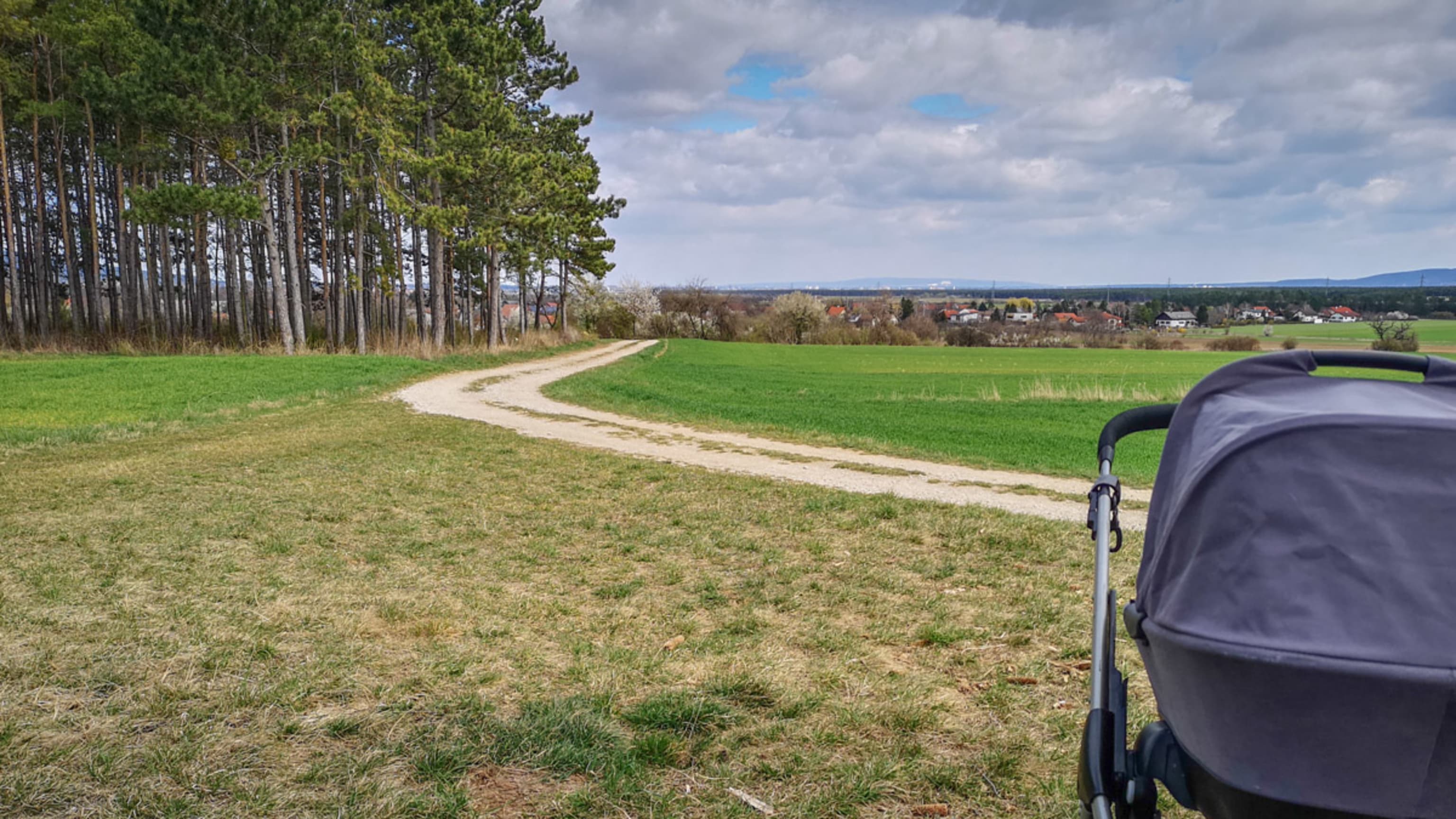 Da ich die ersten Jahre als Mama in St. Egyden direkt am Ausgang eines Feldwegs wohnte, war auch mit Baby und Kleinkind anfangs diese Gegend meine erste Anlaufstelle beim Spazieren. Immerhin sind mir die Wege von unzähligen Spazierfahrten gut vertraut und außerdem bieten sie genau die Voraussetzungen, die ich (siehe oben) an einen passenden Spaziergang mit Kleinkindbegleitung stelle.