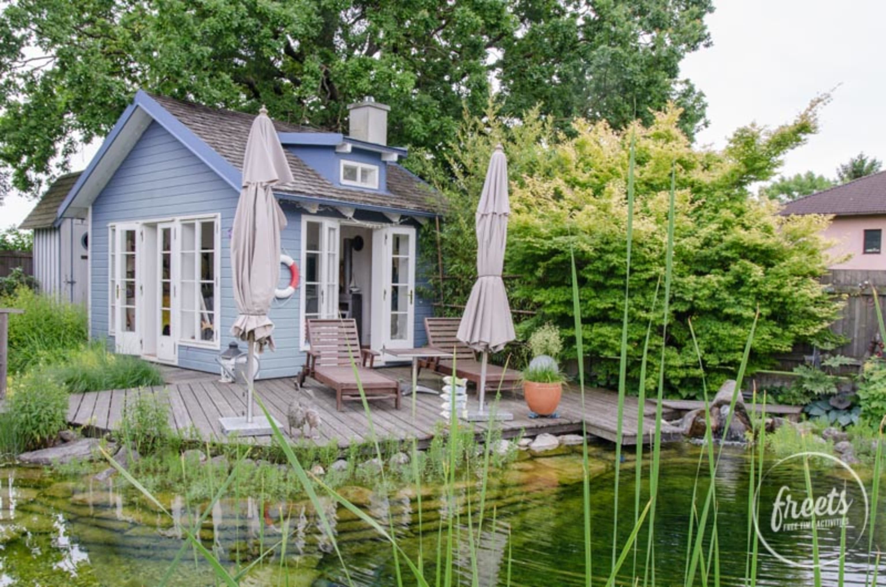 Obwohl ich nur zu Gast in Rainbows End war, hatte ich hier mit Blick auf diesen Schwimmteich und dem hübschen skandinavisch angehauchten „Poolhäuschen“ sofort das Gefühl angekommen zu sein. Bedächtiger wurden meine Schritte, langsamer, damit ich auch wirklich jedes Detail aufnehmen und festhalten konnte. Gut, sicher auch, weil ich viele Details dann auch faktisch mit meiner Kamera festgehalten hatte. Spätestens hier ist das Ende des Regenbogens auch für mich zu einem Sehnsuchtsort geworden. Nicht ohne aber zu wissen, wenn ich will, wenn ich mich geschickt anstelle, dann kann ich mir auch ein Stück dieses kleinen Paradieses nach Hause holen und selbst in meinem Garten erschaffen.